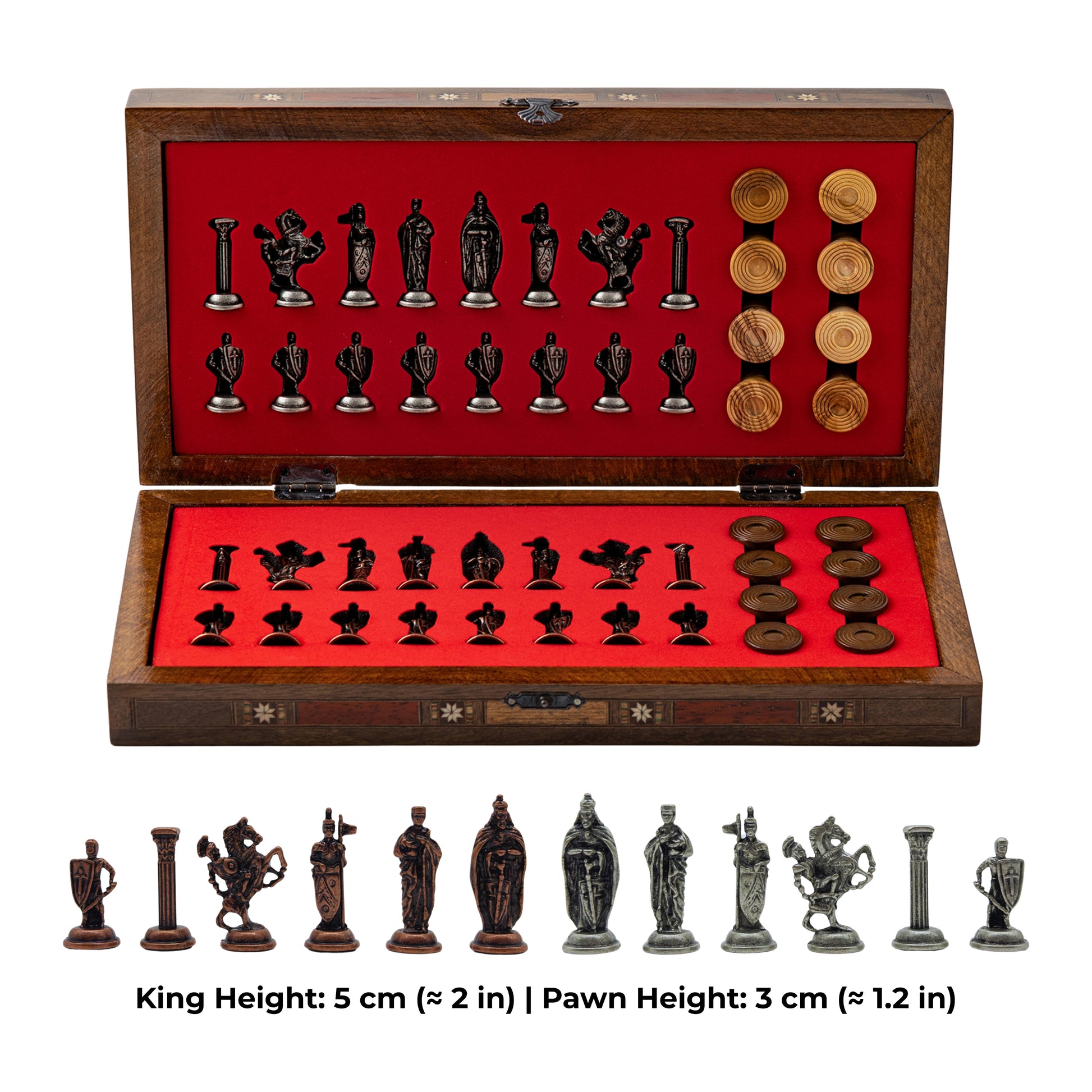 13" Handmade Walnut Folding Chess Set – Luxury Metal Chess Pieces & Storage