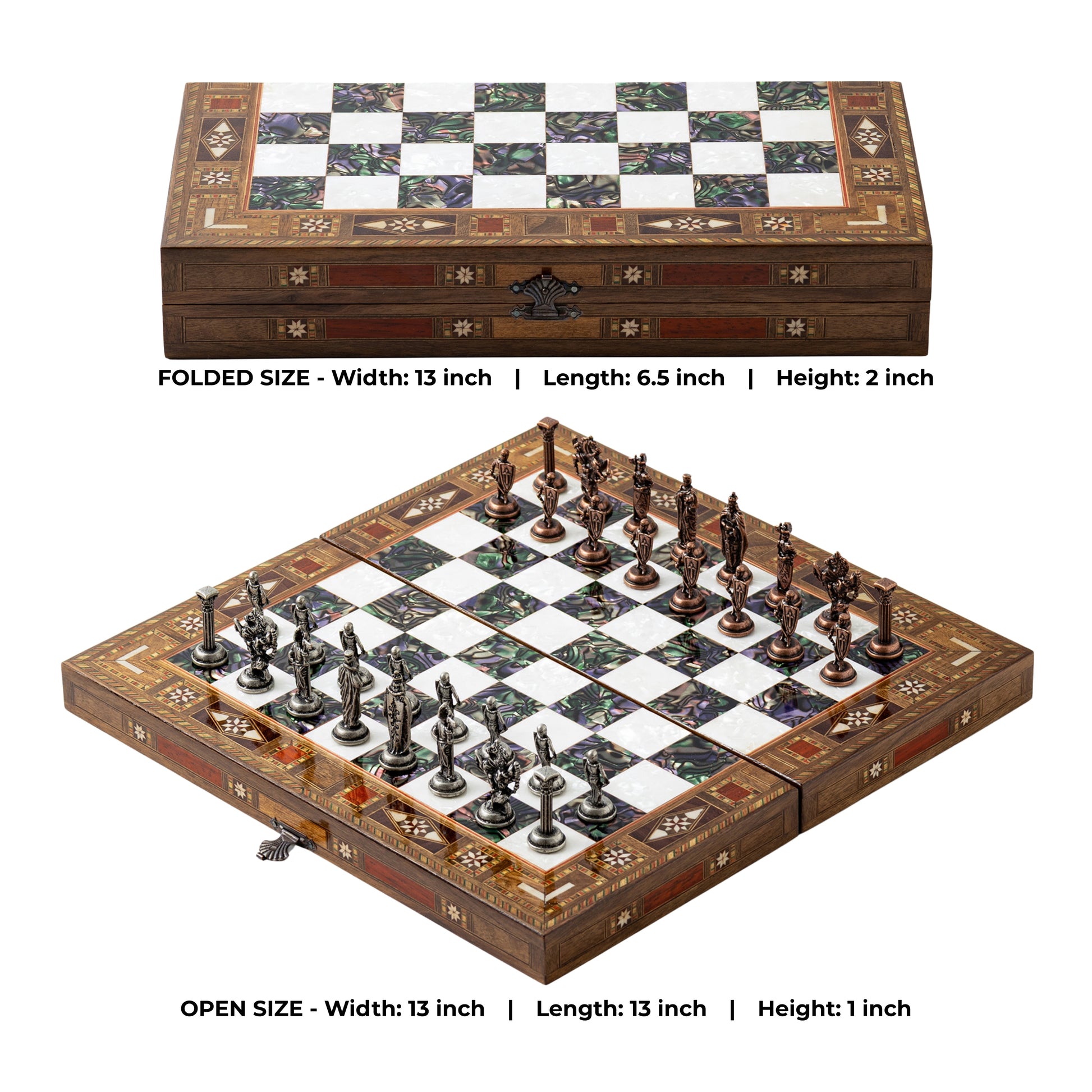 13" Handmade Folding Chess Set – Luxury Walnut Board with Metal Pieces